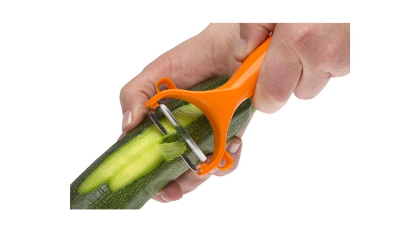 קולפן ירקות דו כיווני בעל שניים משוננות – מסוגל לקלוף לשני הכיוונים – קדימה ואחורה, ואפילו לקלוף עגבניות.